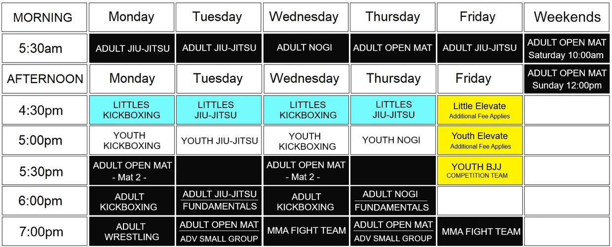 We strive to create a positive and supportive environment offering an expansive schedule and unlimited classes with access to both Kickboxing, Brazilian Jiu-Jitsu, and NOGI Submission Wrestling all at one great price!